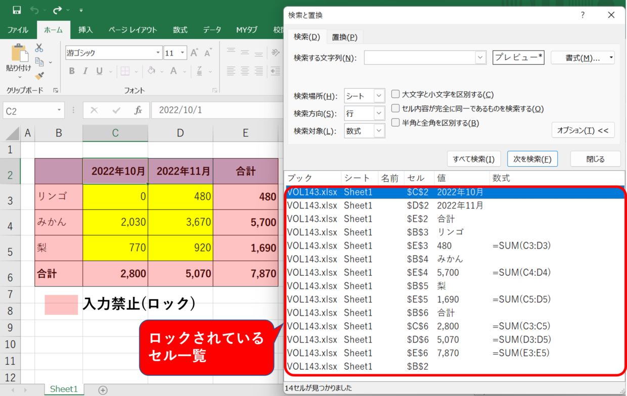 この見出しでは、『ロックされているセルの見つけ方』を紹介します。