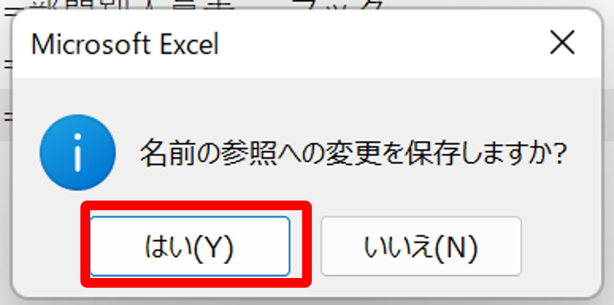 「名前の参照への変更を保存しますか?」と問われるので、「はい」を選択します。