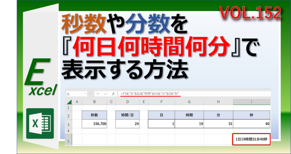足し算や引き算で算出した時間を時間数や分数や秒数に表示を変換する方法を解説します。